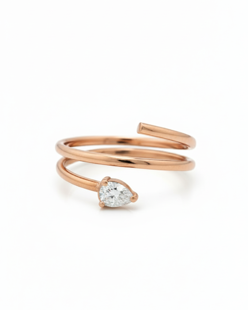 18K Rose or Yellow Gold Open Wrap Ring with Pear Diamond